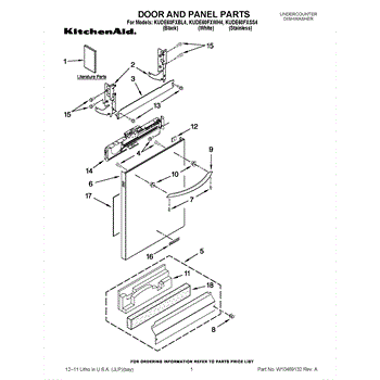 The Dishwasher Access Panel is an OEM part for Whirlpool dishwashers. This panel covers the lower front section of the dishwasher, providing a finished look while protecting internal components from debris and damage.