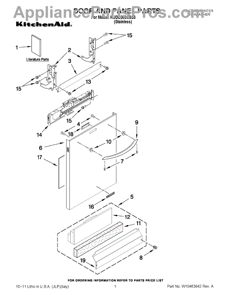 The Door Hinge Assembly is an OEM part for Whirlpool dishwashers. This hinge assembly is responsible for attaching the dishwasher door to the main body, allowing it to open and close smoothly while maintaining a proper seal when shut.