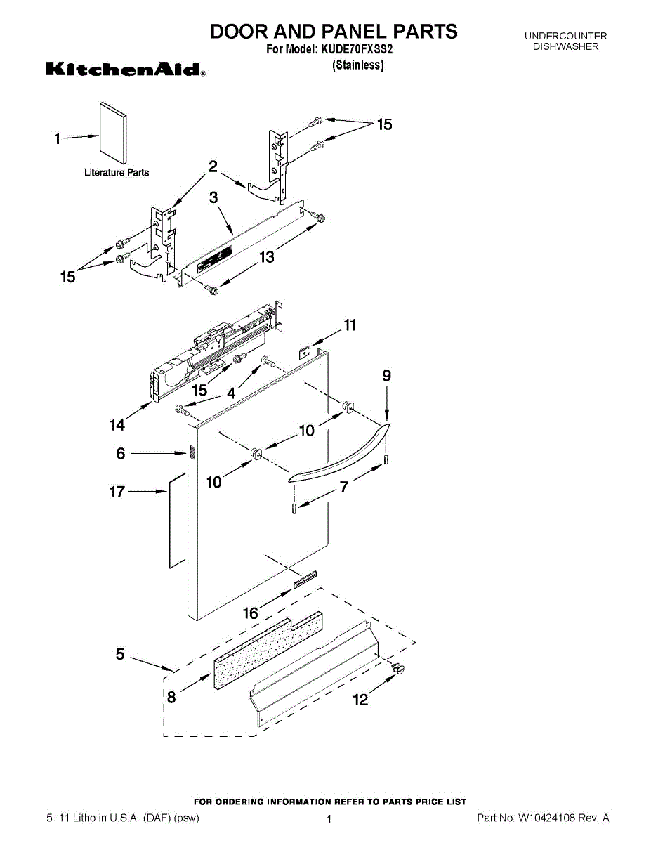 Stainless steel outer door panel for your dishwasher. Replace cracked, dented, or discolored panels or update from white to stainless finish.
