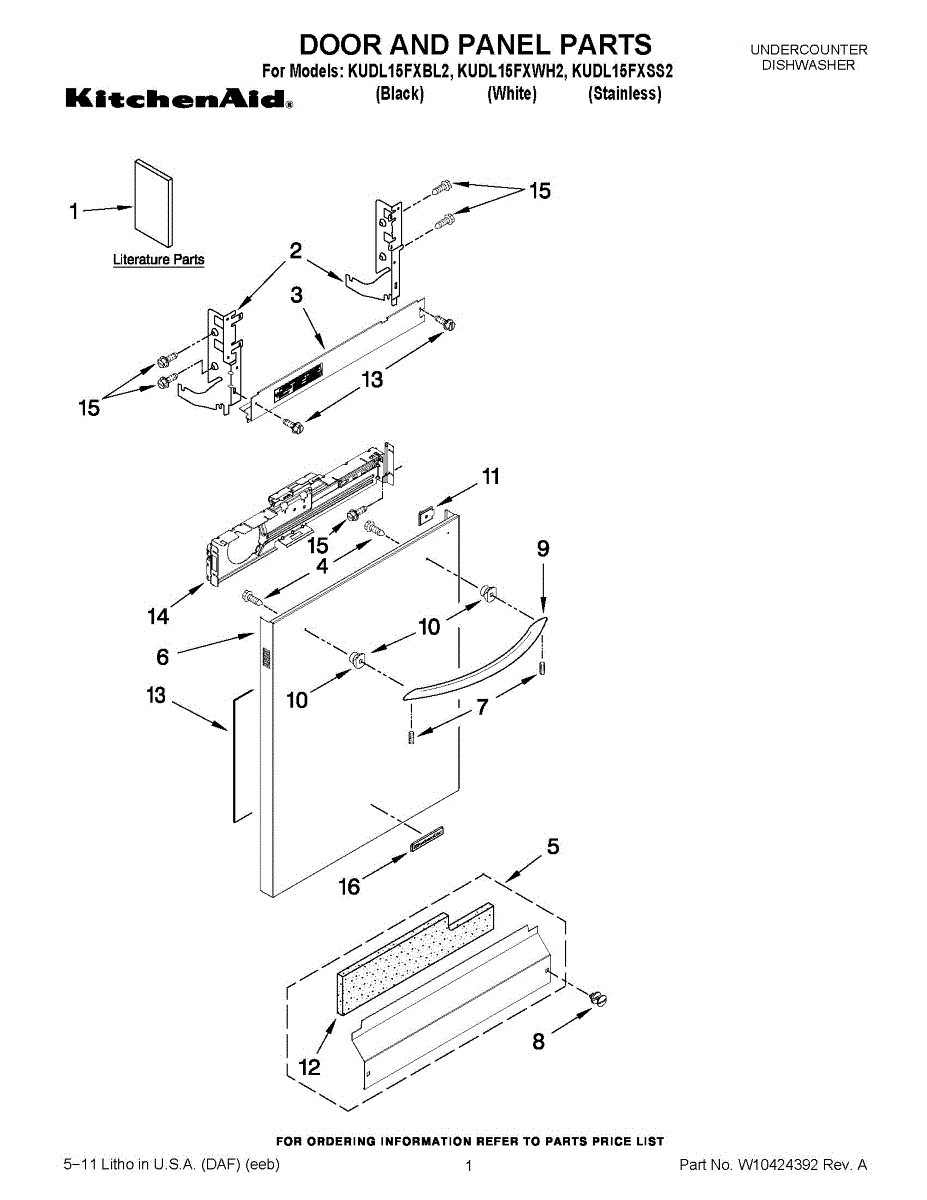 White front access panel for dishwasher door. Replace worn, discolored, or damaged panels to restore your dishwasher's appearance. Direct fit installation.