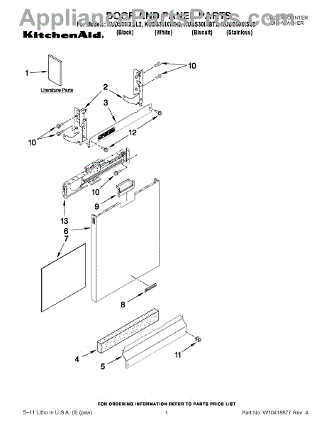 Parts for Kitchenaid KUDS30IXBL2: 01 - Door And Panel Parts
