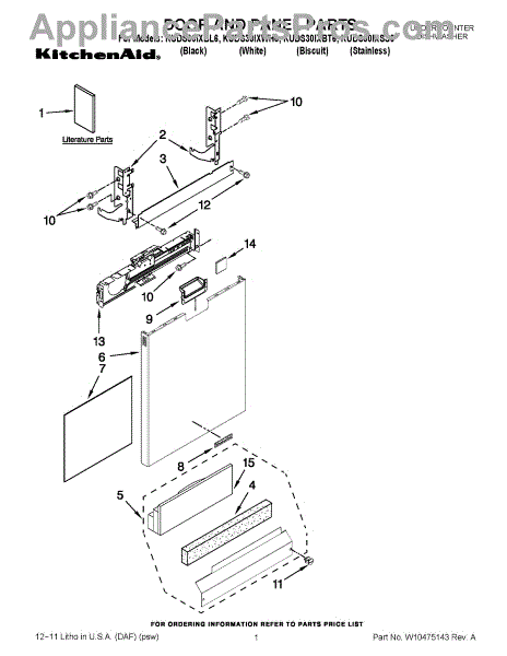 Parts for Kitchenaid KUDS30IXSS6: 01 - Door And Panel Parts