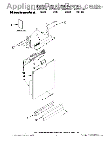 Parts for Kitchenaid KUDS30IXWH1: 01 - Door And Panel Parts