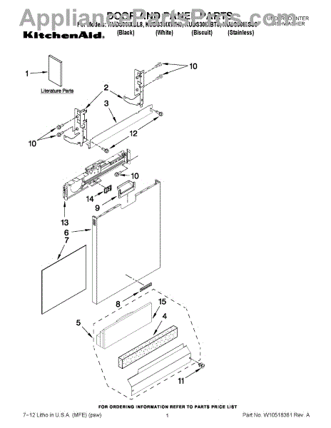 Parts for Kitchenaid KUDS30IXWH8: 01 - Door And Panel Parts