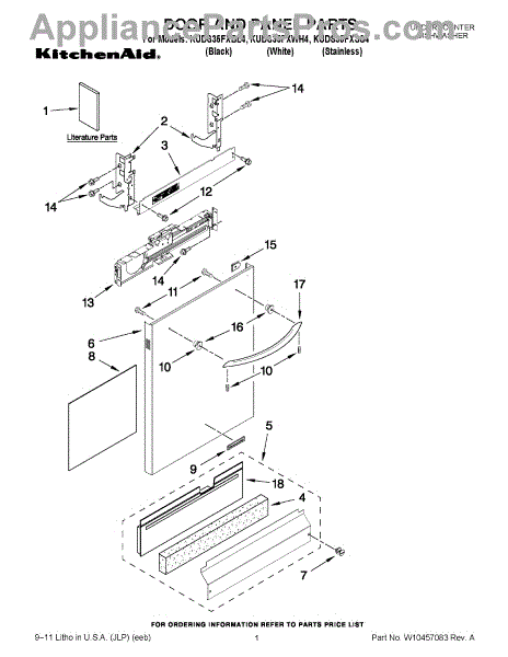 Parts for Kitchenaid KUDS35FXBL4: 01 - Door And Panel Parts