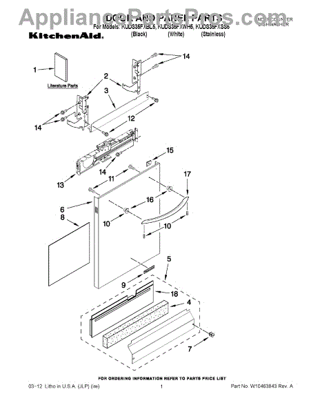 The Dishwasher Access Panel is an OEM part for Whirlpool dishwashers. This panel covers the lower front section of the dishwasher, providing a finished look while protecting internal components from debris and damage.