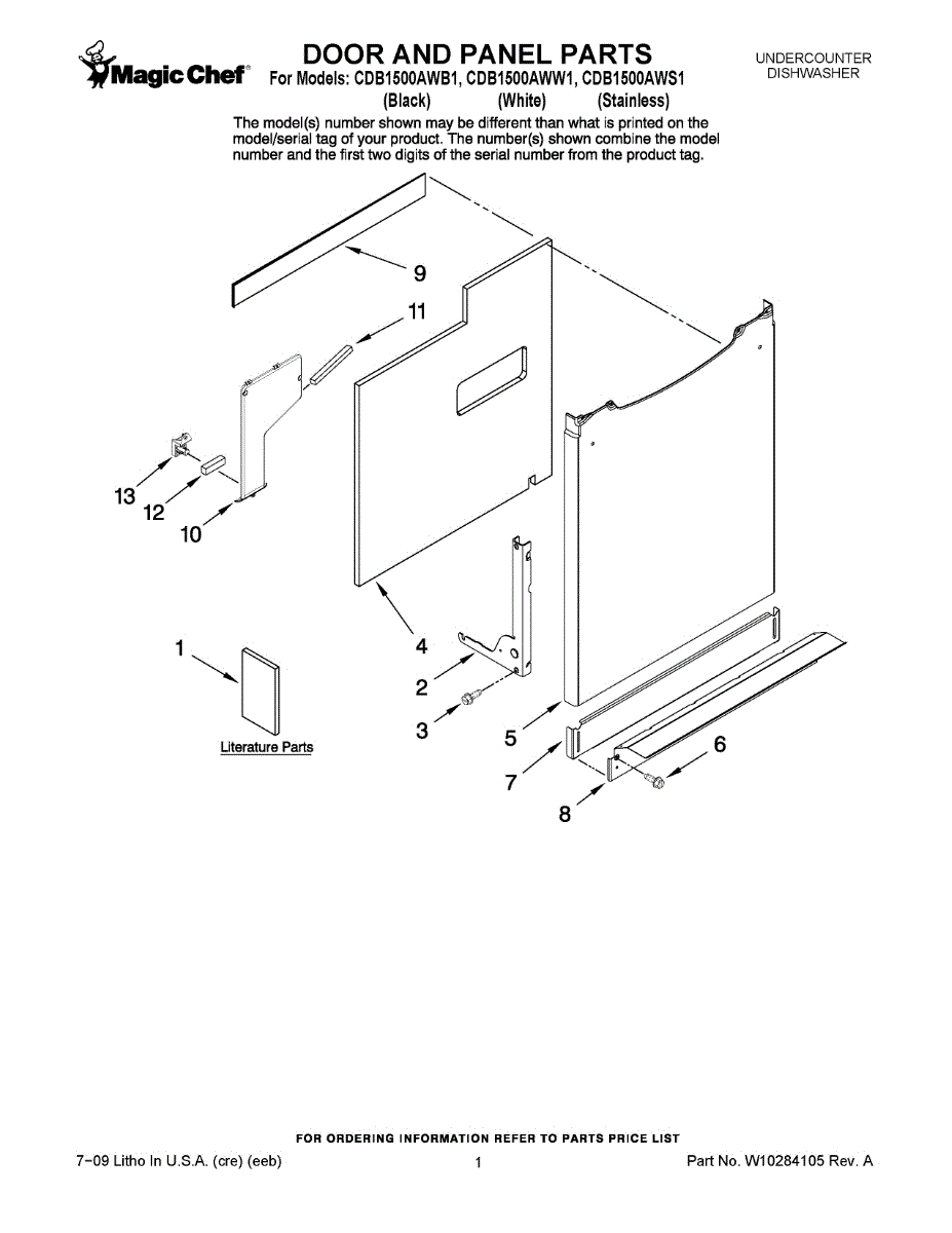 Inner door panel for dishwashers. Covers the interior door frame and provides structural support. Replace if cracked, warped, or damaged from wear.