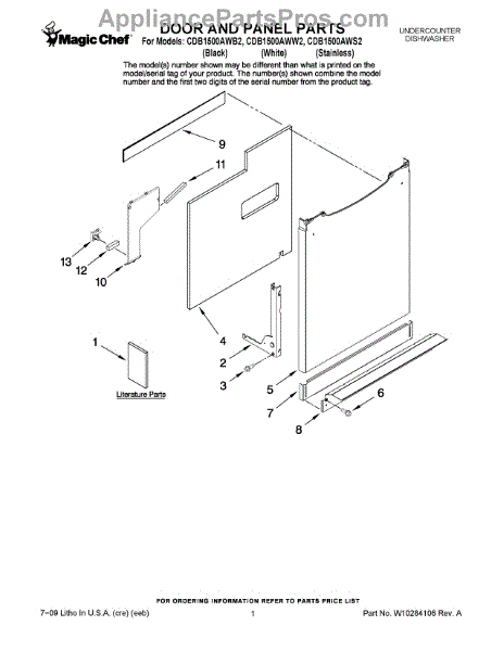 Inner door panel for dishwashers. Covers the interior door frame and provides structural support. Replace if cracked, warped, or damaged from wear.