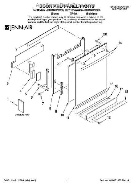 Parts for Maytag JDB1100AWS36: 01 - Door And Panel Parts