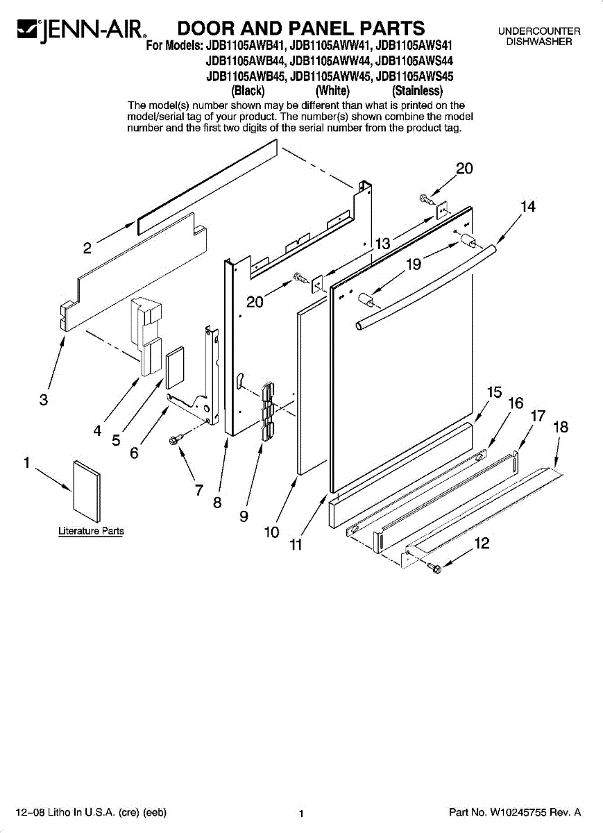 Parts for Maytag JDB1105AWS41: 01 - Door And Panel Parts