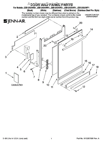 Parts for Maytag JDB1255AWR1: 01 - Door And Panel Parts