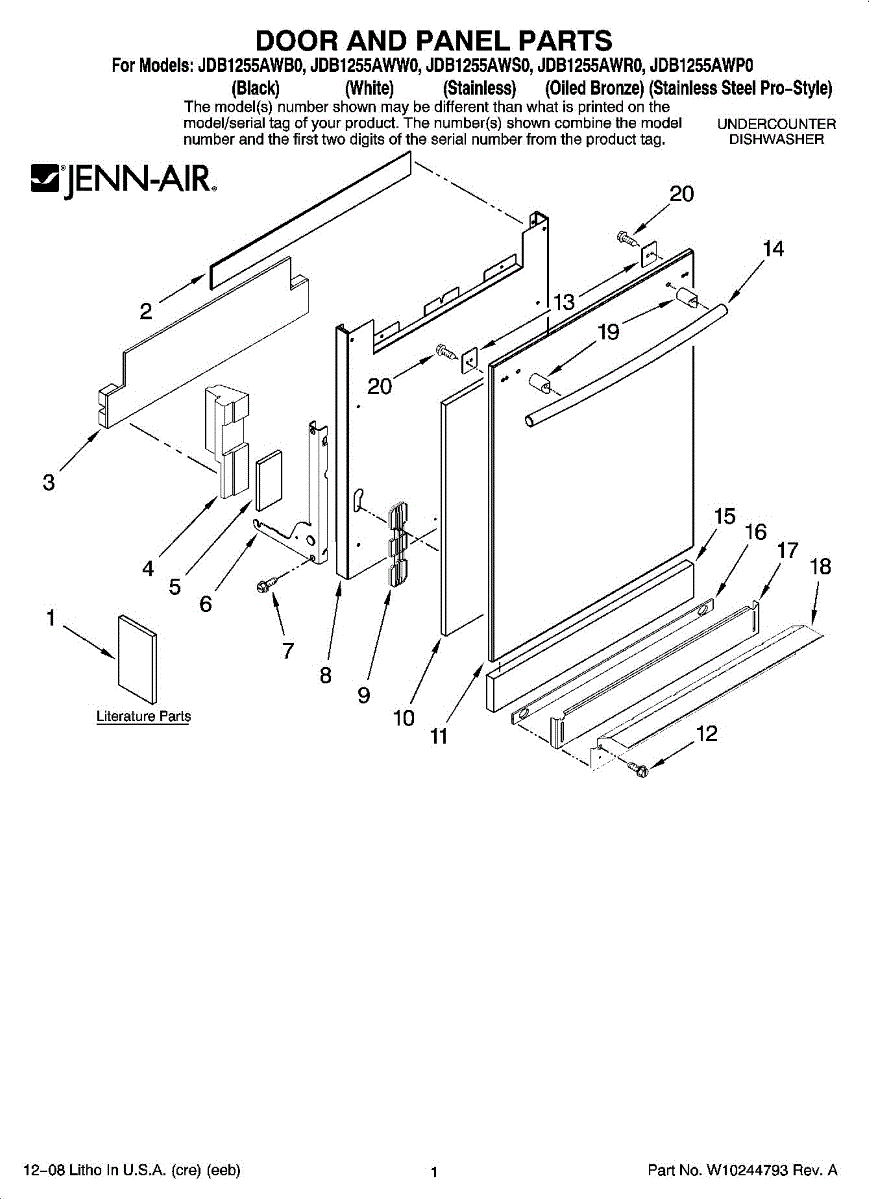 Parts for Maytag JDB1255AWS0: 01 - Door And Panel Parts