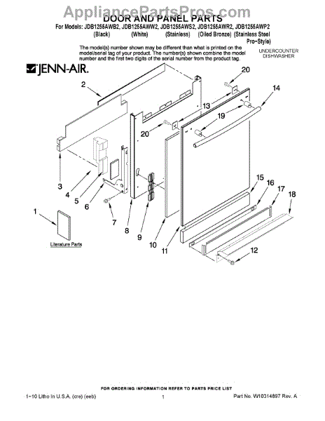 Parts for Maytag JDB1255AWS2: 01 - Door And Panel Parts