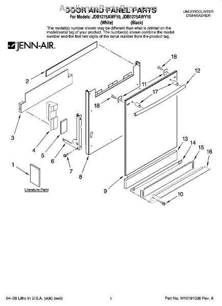 Parts for Maytag JDB1275AWF10: 01 - Door And Panel Parts