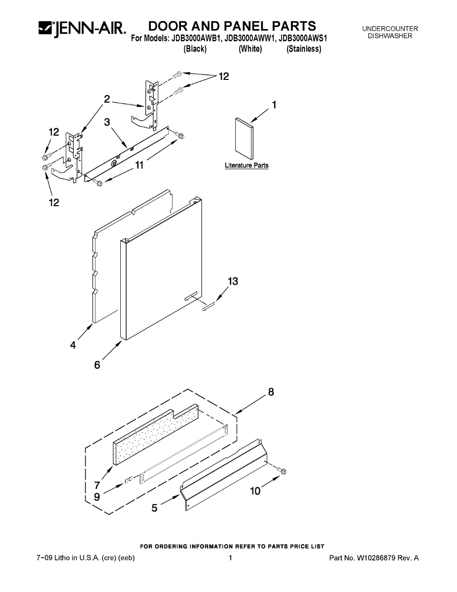 Replacement dishwasher panel that covers and protects internal components. Install to replace a dented, cracked, worn, or missing panel piece.