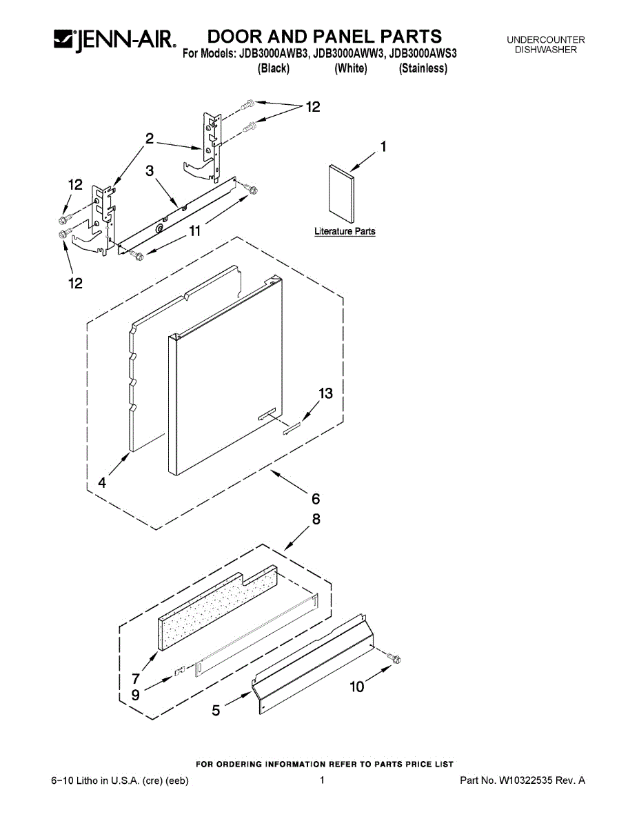Replacement dishwasher panel that covers and protects internal components. Install to replace a dented, cracked, worn, or missing panel piece.