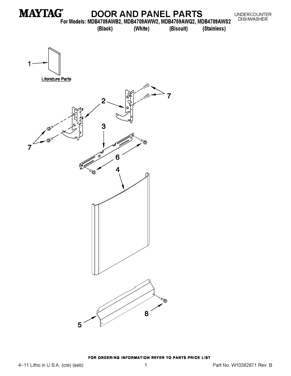 Replacement dishwasher panel that covers and protects internal components. Install to replace a dented, cracked, worn, or missing panel piece.