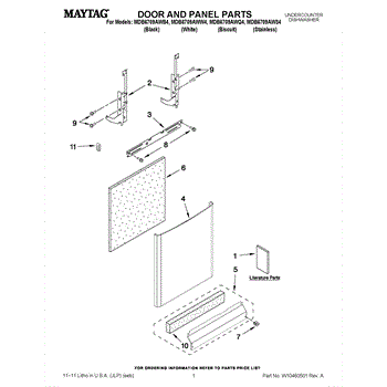 The Panel (BLK) is an OEM part for Whirlpool dishwashers. This black exterior panel is designed to provide a sleek and durable front surface for the dishwasher, enhancing its appearance and protecting internal components.