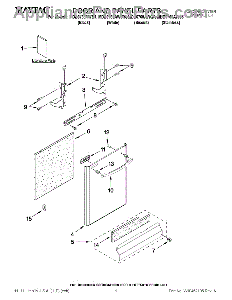 Replacement screw secures internal panels, brackets, and components in dishwashers. Replaces lost, stripped, or damaged fasteners during repair work.