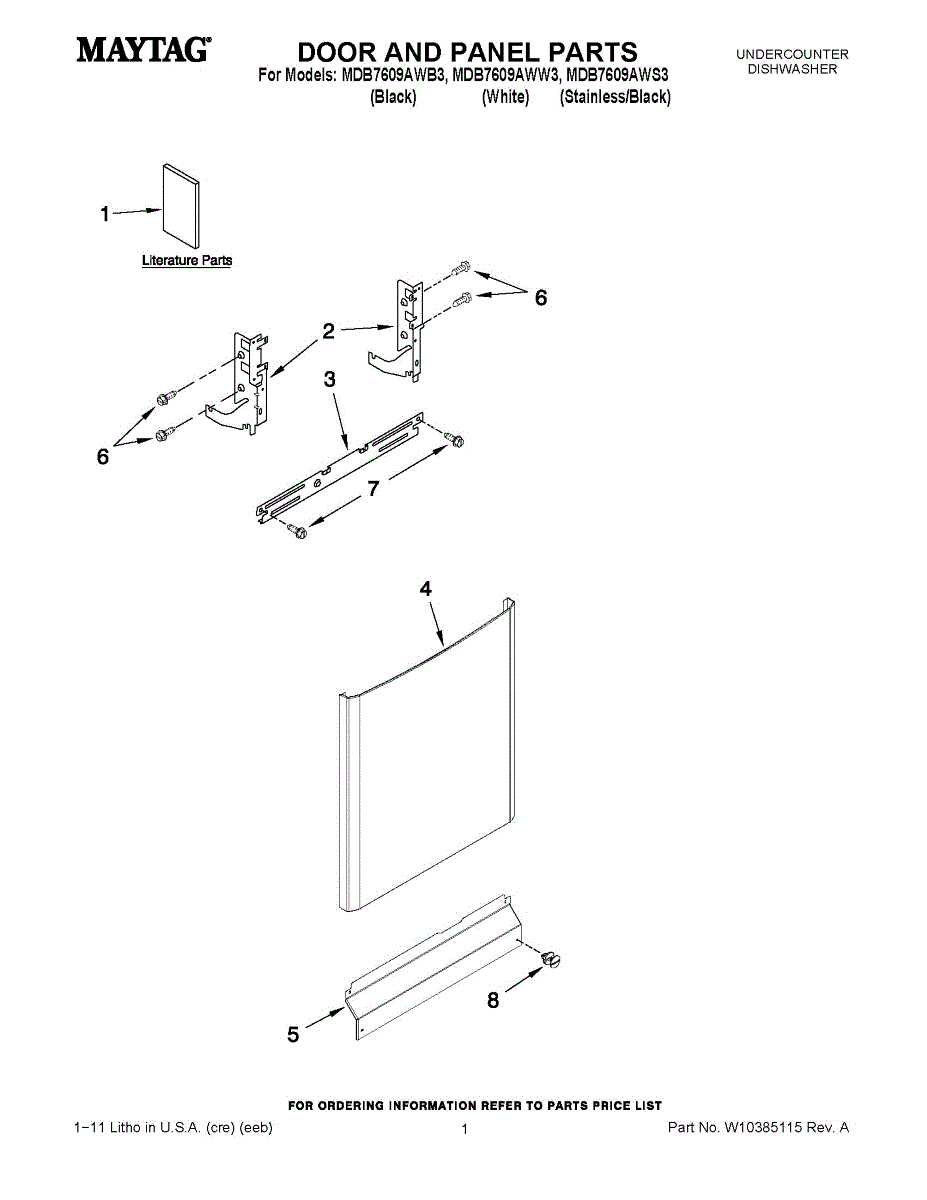 Dishwasher front door panel in stainless finish. Installs on the outer door to replace cracked, dented, or discolored panels or update your kitchen style.