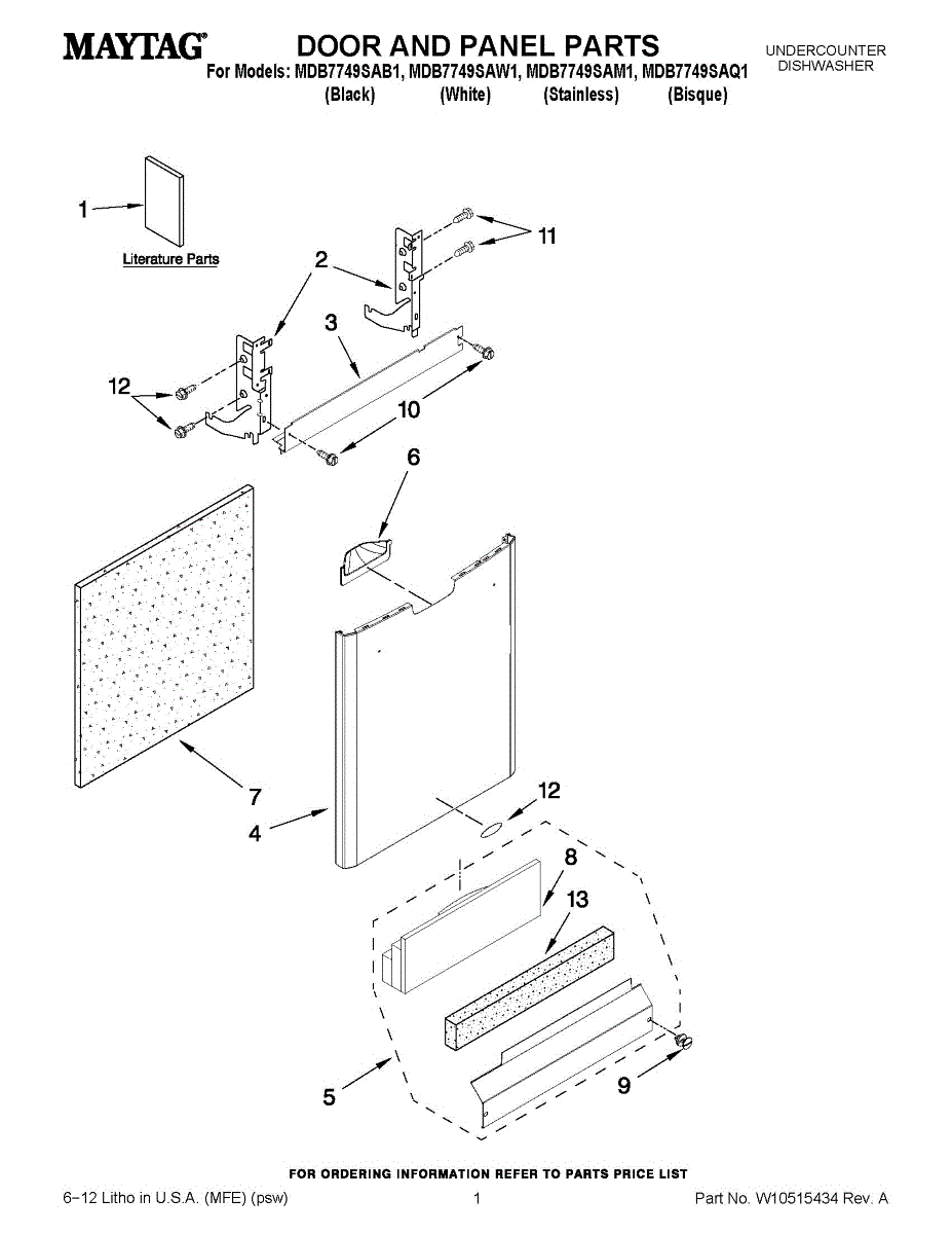 White outer door panel for dishwashers. Replaces cracked, discolored, or damaged front panels. Allows color customization of your dishwasher exterior.