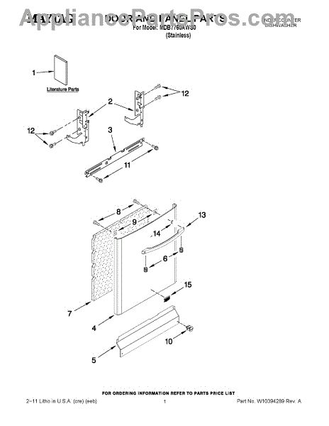 The Panel (BLK) is an OEM part for Whirlpool dishwashers. This black exterior panel is designed to provide a sleek and durable front surface for the dishwasher, enhancing its appearance and protecting internal components.
