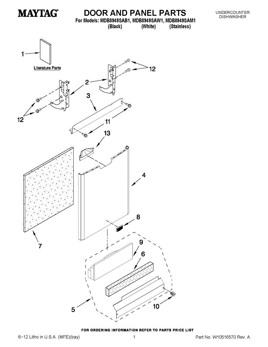 White outer door panel for dishwashers. Replaces cracked, discolored, or damaged front panels. Allows color customization of your dishwasher exterior.