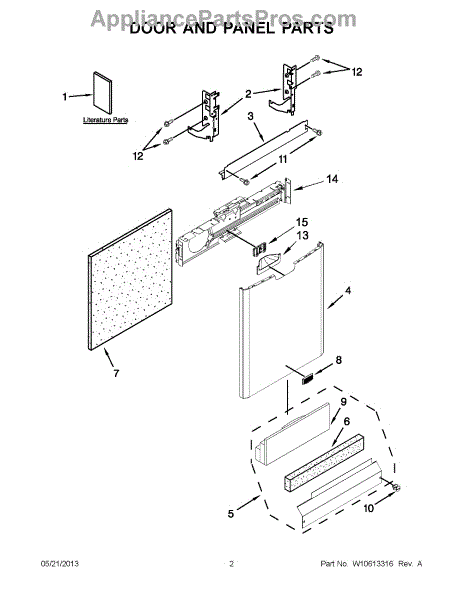 White outer door panel for dishwashers. Replaces cracked, discolored, or damaged front panels. Allows color customization of your dishwasher exterior.