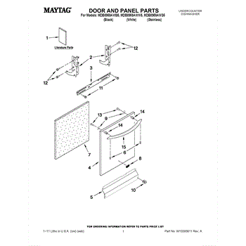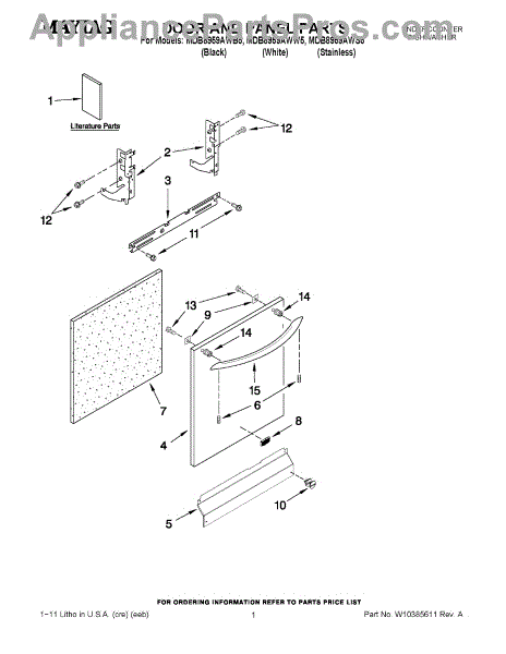 The Panel (BLK) is an OEM part for Whirlpool dishwashers. This black exterior panel is designed to provide a sleek and durable front surface for the dishwasher, enhancing its appearance and protecting internal components.