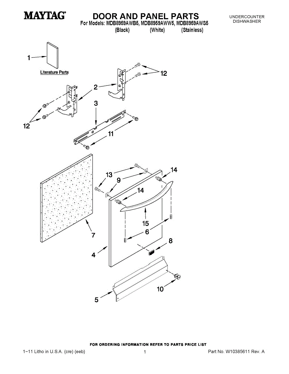 White front access panel for dishwasher door. Replace worn, discolored, or damaged panels to restore your dishwasher's appearance. Direct fit installation.