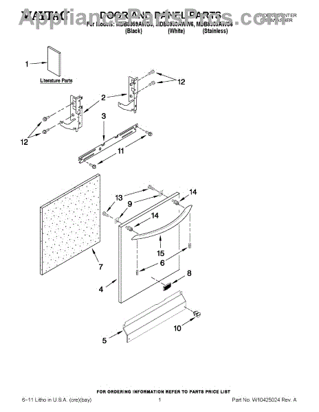The Panel (BLK) is an OEM part for Whirlpool dishwashers. This black exterior panel is designed to provide a sleek and durable front surface for the dishwasher, enhancing its appearance and protecting internal components.