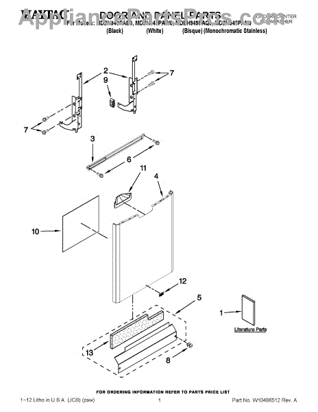 The Panel (BLK) is an OEM part for Whirlpool dishwashers. This black exterior panel is designed to provide a sleek and durable front surface for the dishwasher, enhancing its appearance and protecting internal components.