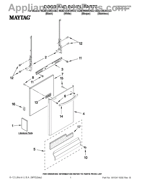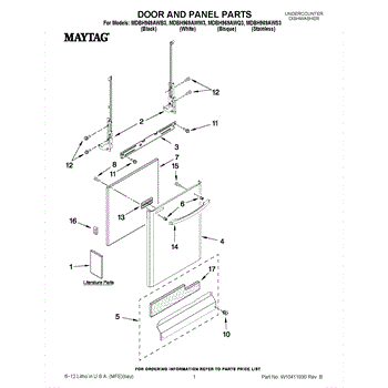 The Panel (BLK) is an OEM part for Whirlpool dishwashers. This black exterior panel is designed to provide a sleek and durable front surface for the dishwasher, enhancing its appearance and protecting internal components.
