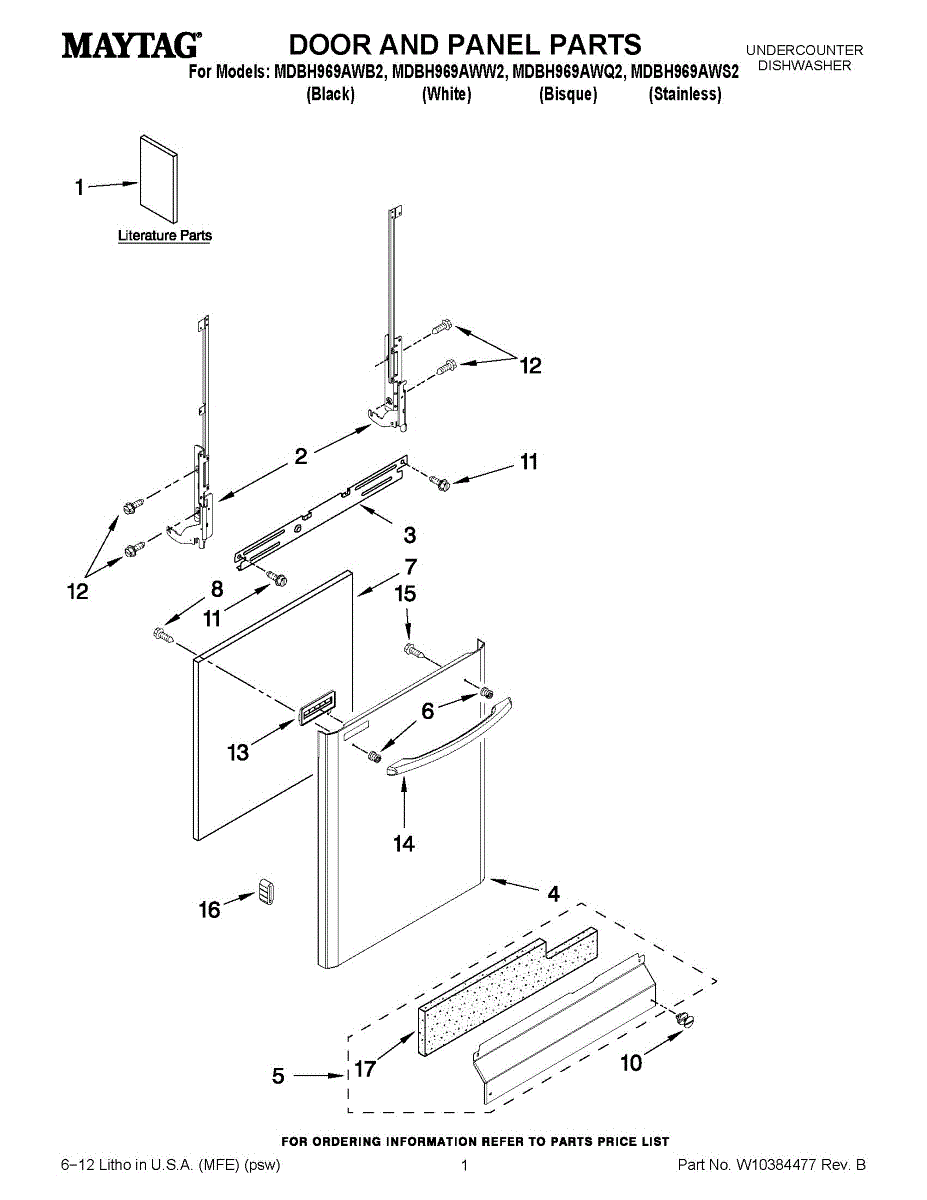 Replacement screw secures internal panels, brackets, and components in dishwashers. Replaces lost, stripped, or damaged fasteners during repair work.