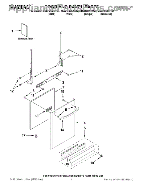 The Panel (BLK) is an OEM part for Whirlpool dishwashers. This black exterior panel is designed to provide a sleek and durable front surface for the dishwasher, enhancing its appearance and protecting internal components.