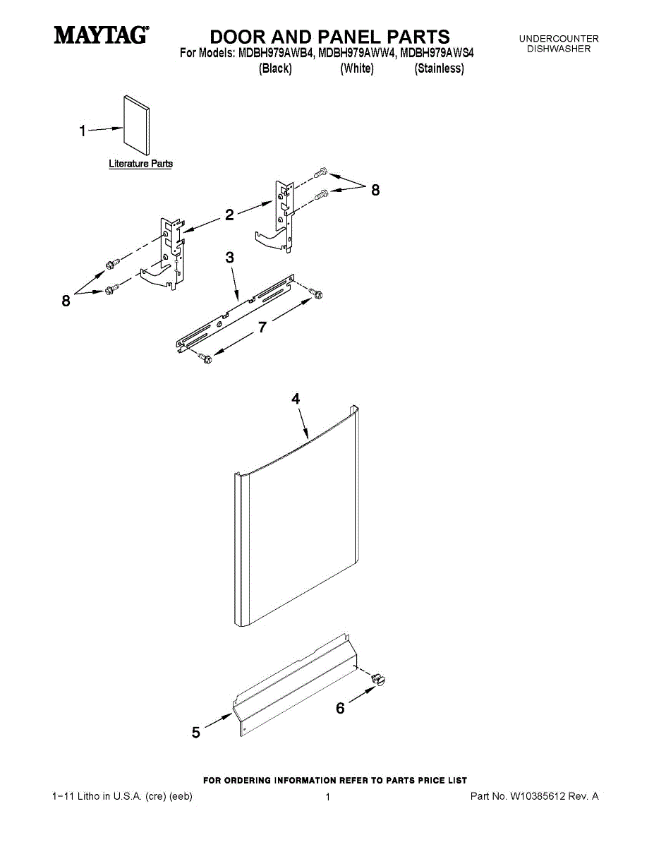 Replacement dishwasher panel that covers and protects internal components. Install to replace a dented, cracked, worn, or missing panel piece.