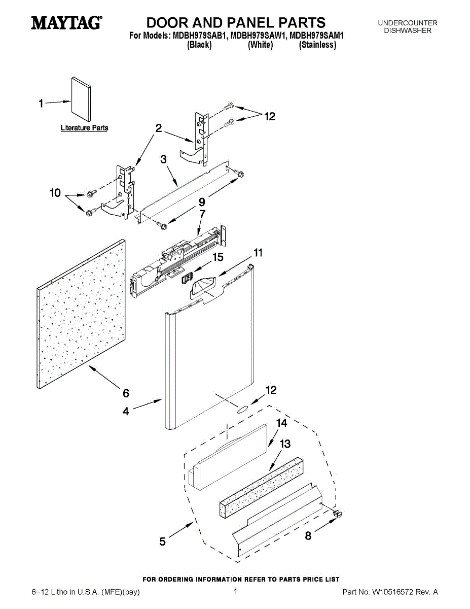 White outer door panel for dishwashers. Replaces cracked, discolored, or damaged front panels. Allows color customization of your dishwasher exterior.