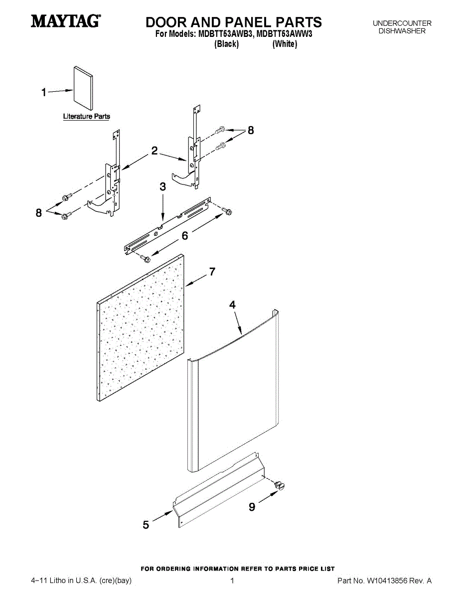 White front access panel for dishwasher door. Replace worn, discolored, or damaged panels to restore your dishwasher's appearance. Direct fit installation.