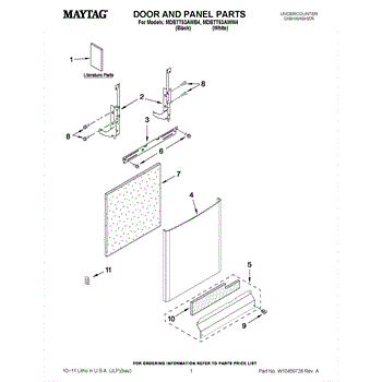 The Panel (BLK) is an OEM part for Whirlpool dishwashers. This black exterior panel is designed to provide a sleek and durable front surface for the dishwasher, enhancing its appearance and protecting internal components.