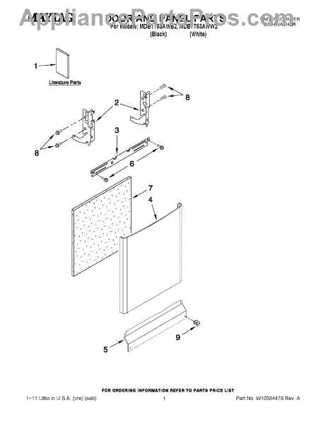 The Panel (BLK) is an OEM part for Whirlpool dishwashers. This black exterior panel is designed to provide a sleek and durable front surface for the dishwasher, enhancing its appearance and protecting internal components.