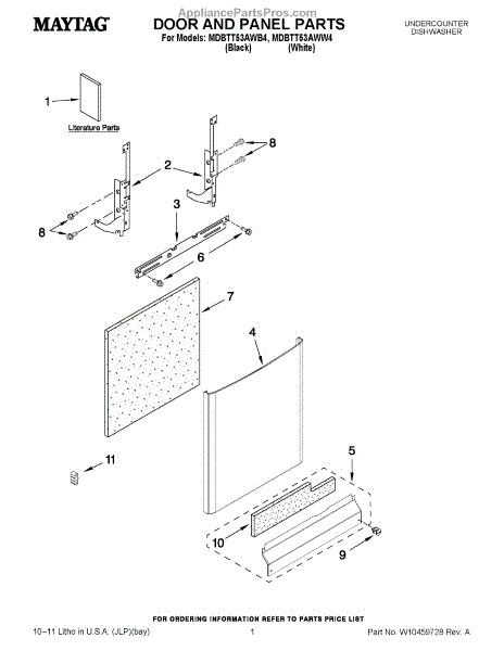 The Panel (BLK) is an OEM part for Whirlpool dishwashers. This black exterior panel is designed to provide a sleek and durable front surface for the dishwasher, enhancing its appearance and protecting internal components.