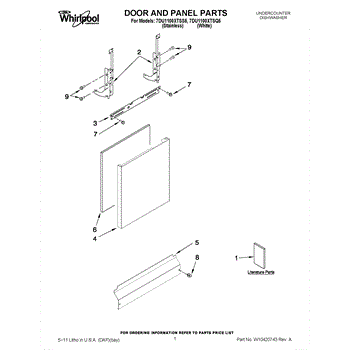 Stainless steel front door panel for dishwashers. Installs on outer door surface. Replace if cracked, dented, discolored, or when updating kitchen aesthetics.