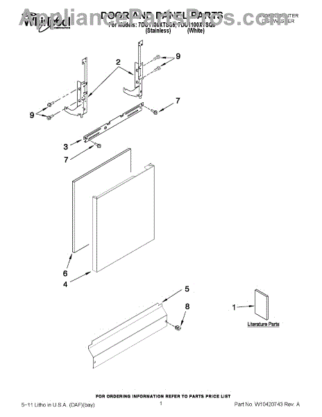 White outer door panel for dishwashers. Replaces cracked, dented, discolored, or mismatched front panels. Updates appearance and covers damage.
