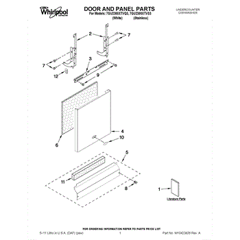 The Dishwasher Access Panel is an OEM part for Whirlpool dishwashers. This panel covers the lower front section of the dishwasher, providing a finished look while protecting internal components from debris and damage.