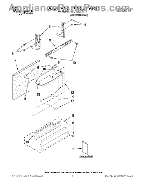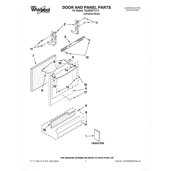 The Panel (BLK) is an OEM part for Whirlpool dishwashers. This black exterior panel is designed to provide a sleek and durable front surface for the dishwasher, enhancing its appearance and protecting internal components.