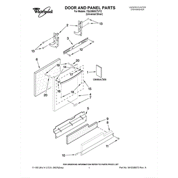 The Door Hinge Assembly is an OEM part for Whirlpool dishwashers. This hinge assembly is responsible for attaching the dishwasher door to the main body, allowing it to open and close smoothly while maintaining a proper seal when shut.