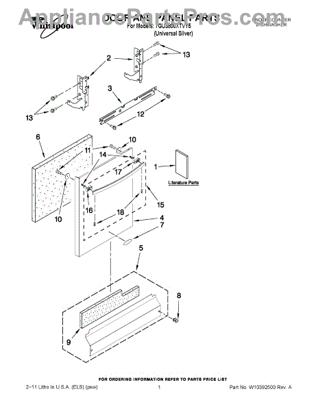 The Panel (BLK) is an OEM part for Whirlpool dishwashers. This black exterior panel is designed to provide a sleek and durable front surface for the dishwasher, enhancing its appearance and protecting internal components.