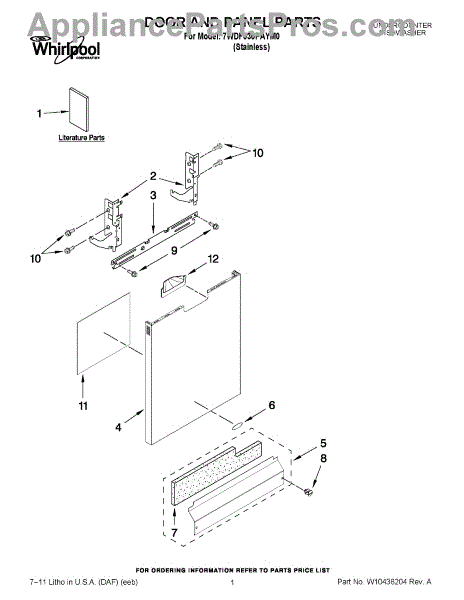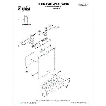 The Panel (BLK) is an OEM part for Whirlpool dishwashers. This black exterior panel is designed to provide a sleek and durable front surface for the dishwasher, enhancing its appearance and protecting internal components.