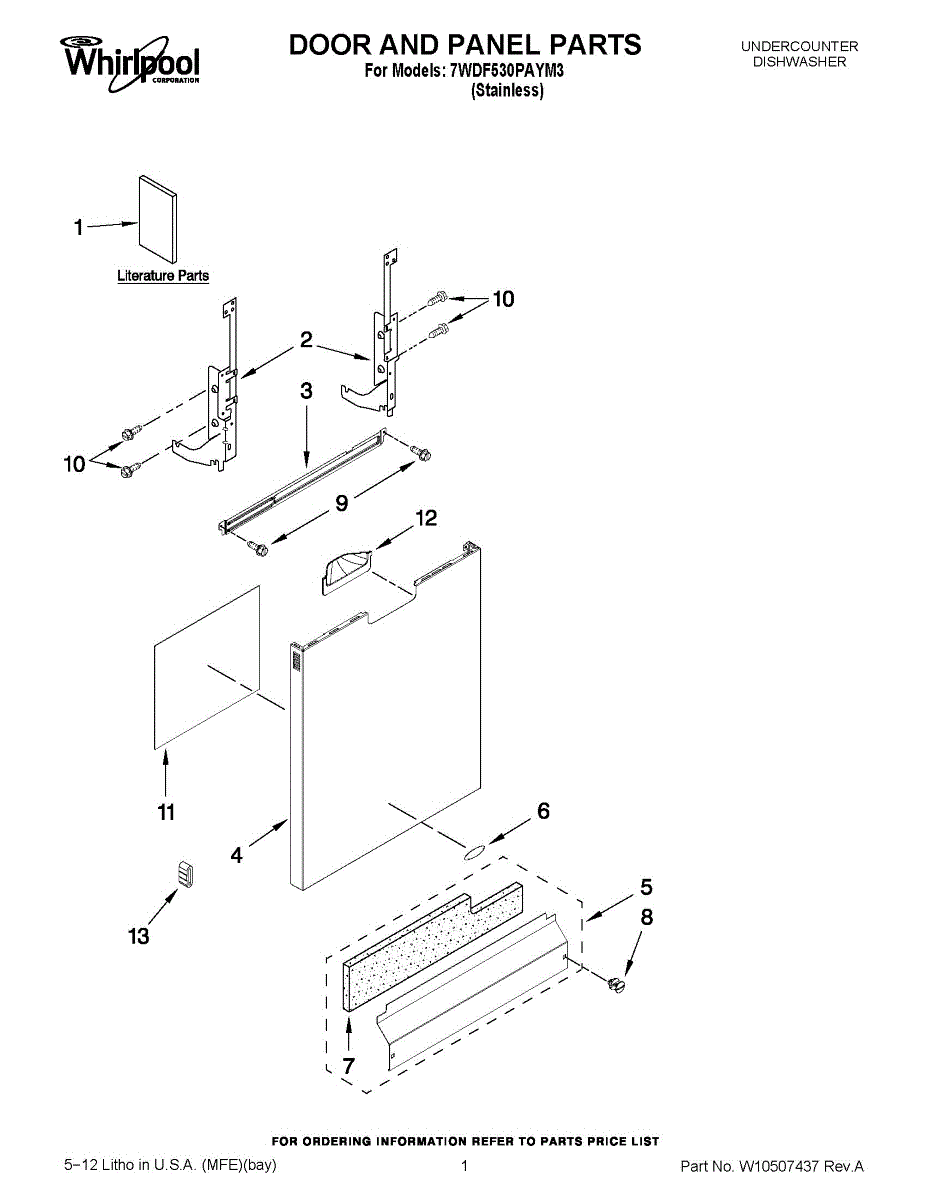 Left-hand door hinge pivots your dishwasher door for smooth opening and tight closure. Replace when door sags, rubs, or won't seal properly. Verify fit.