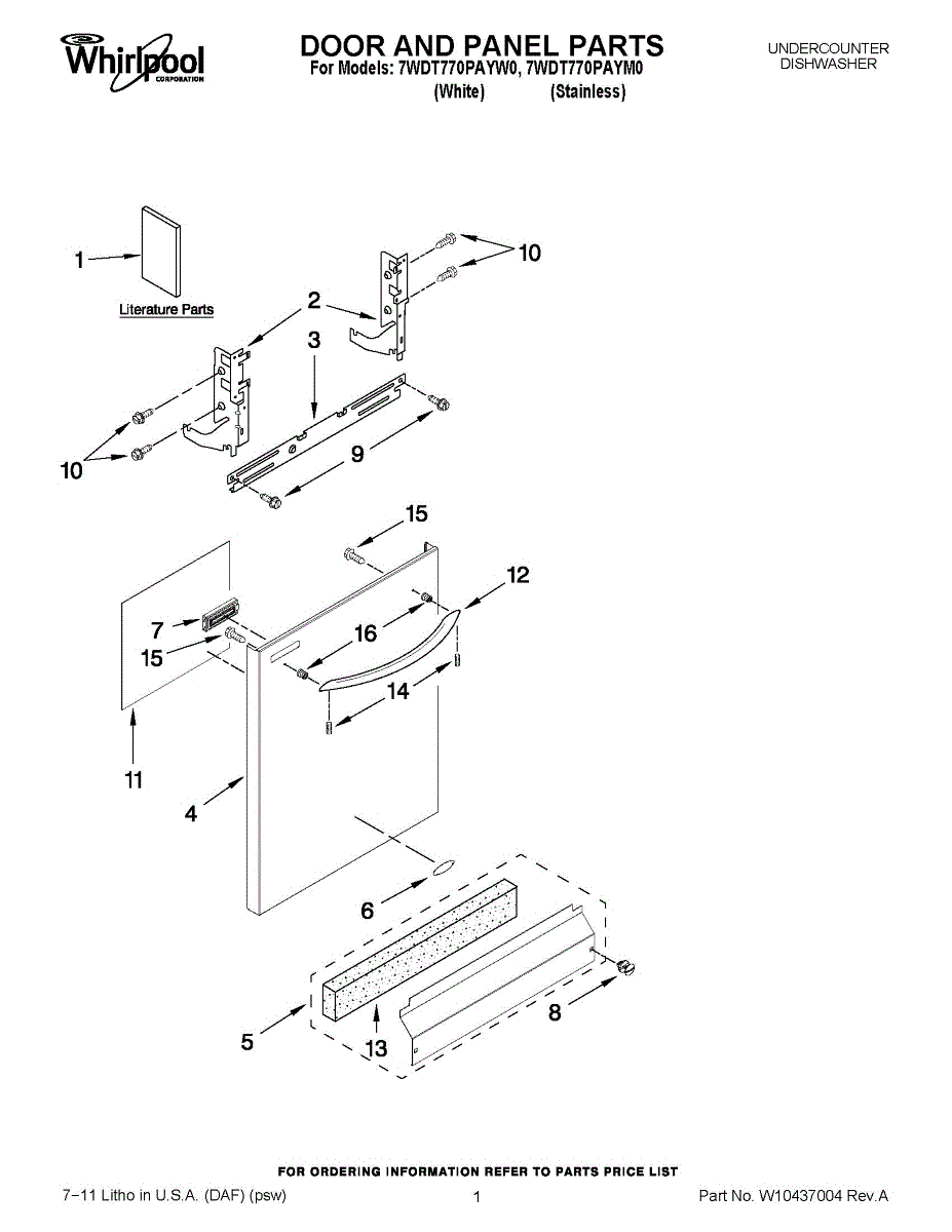 White front access panel for dishwasher door. Replace worn, discolored, or damaged panels to restore your dishwasher's appearance. Direct fit installation.